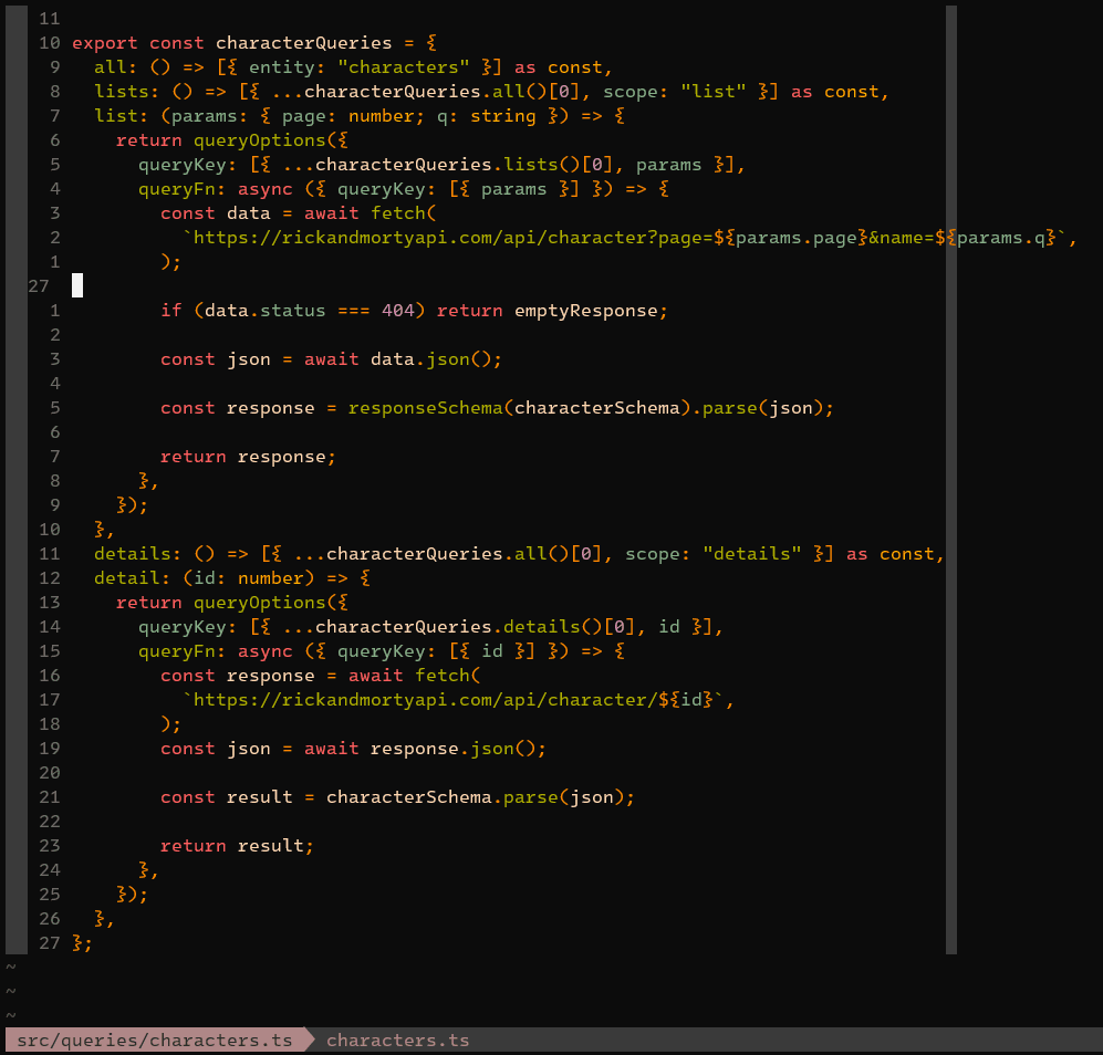 First, I declare my queries (Please read this cool (as always) blog post by TkDodo : The Query Options API):